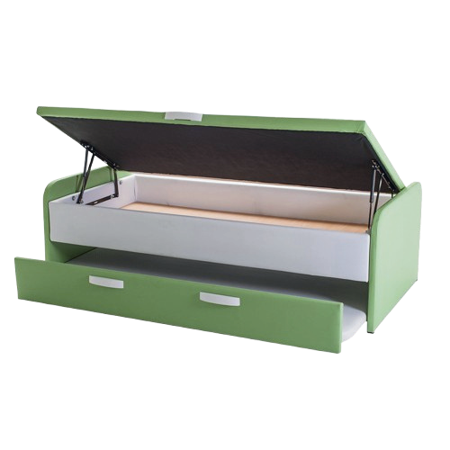 Estructura metálica reforzada con tablero de madera en la parte superior e inferior. Sistema de apertura a gas con hidráulicos de alta resistencia que garantizan durabilidad y facilidad de uso. Tapizado en polipiel disponible en varios colores.