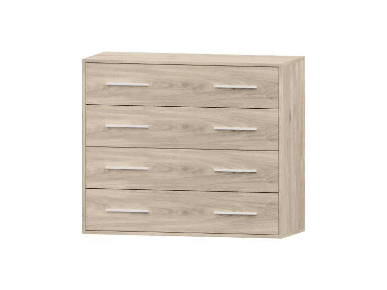 Práctica y funcional, esta cómoda cuenta con 4 amplios cajones para mantener tu ropa y objetos personales bien organizados. Su diseño moderno se adapta a cualquier dormitorio o espacio interior.