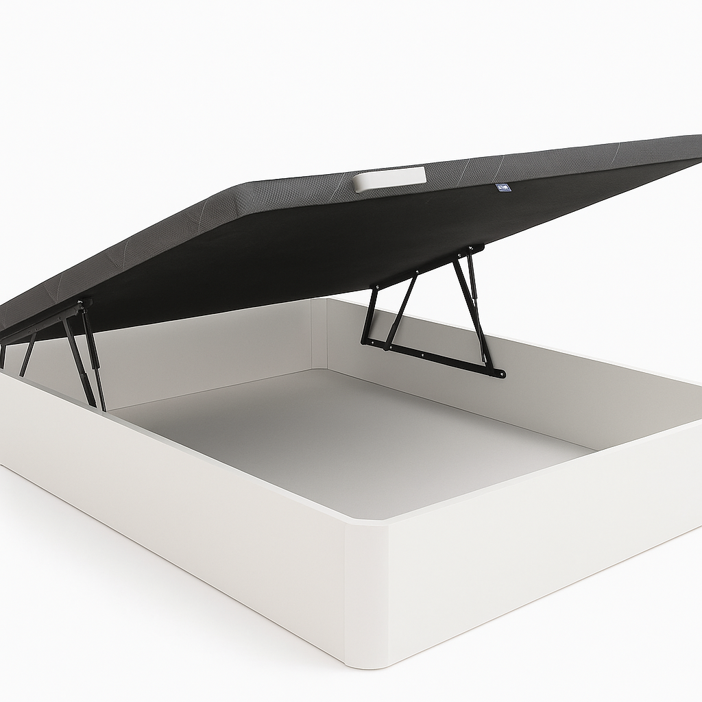 Con estructura reforzada y acabados en melamina de alta resistencia, este modelo ofrece una solución práctica para quienes buscan durabilidad sin exceso de peso. Incluye base tapizada transpirable que cuida tu colchón y un sistema de apertura hidráulico silencioso que facilita el acceso al interior con suavidad.